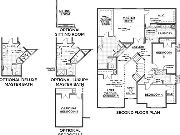 This home boasts an elegant 2-story foyer, adorned by a large hanging chandelier and a curved staircase leading up to the open-air landing. Formal living area or an optional study, are adjacent to the formal dining room. The dining room has a tray ceiling and an option to add a built in buffet. The spectacular kitchen has a very large pantry, tons of counter space and storage, even more when you elect to add the optional island. The optional chef's package includes a gas cook top and a hood, a built in oven with a microwave above. The kitchen opens to the great room, which has an option to add a gas log fireplace. There is a screened in porch or an option to add a sunroom. Finishing out the downstairs is a bedroom and a full bathroom. Upstairs there is grand master suite, large enough for a king sized bed and has an option to vault the ceiling. There are 2 very large walk-in closets, one of which can be upgraded to a sitting room. The master bath can be built with a double sink vanity, and either a large walk in shower and oversized linen closet, or a separate shower and tub. Bedrooms three and four are also located upstairs. Joining them is a loft, which can be upgraded to the 5th bedroom, third full bathroom and the laundry room. This home has a 2-car garage.