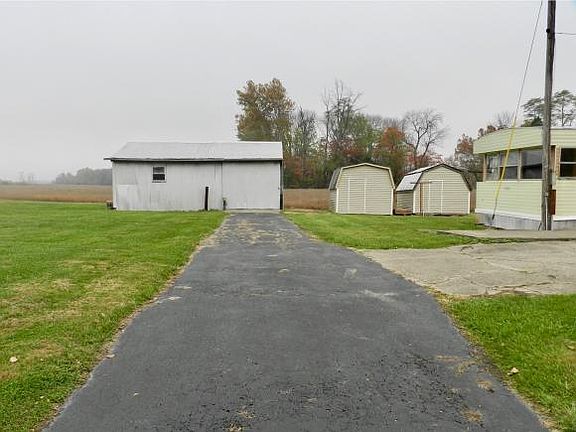 Great location just North of Milan older mobile in good condition for the year with a detached garage and 2 storage sheds on a corner lot with approximately 2.4 acres more or less.