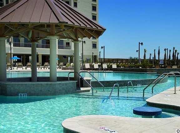 The Calcutta features 4 BR/4.5BA and 2-car garage, pool with spectacular ocean views, elevator, large Great Room with coffered ceiling, SS appliances and granite countertops in the Kitchen, owner's closet, rear large covered porch, Laundry Room, Master Suite with it own private covered porch, large tiled shower and free-standing tub in Master Bath and 3 Guest Rooms with private baths. North Beach Plantation offers a 2.5-acre oceanfront pool area with lazy river and swim-up bar, on-site restaurants, world-class Cinzia Spa and Beach Fit fitness center located near Barefoot Landing with easy access to Hwy. 22 and 31. Barefoot Golf membership opportunity with purchase.