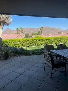 Beautiful freestanding custom Skyview home.Private elevated setting with great mountain views from expanded patio with fireplace, heaters custom tilework. Stacking windows have been raised in living areas to enhance the views. 2-bedrooms plus large office/den. Open floorplan with sitting area off dining room and kitchen plus living room. Located at the end of a cul-de-sac near 2-HOA pools. Lives like a custom home with private yard area and professional landscaping. 2-car plus golf cart garage. Indoor laundry room. Kitchen with large island and built-in fridge. Elegantly furnished