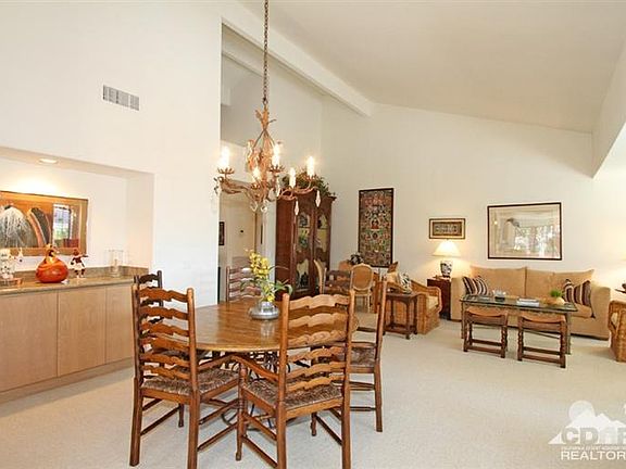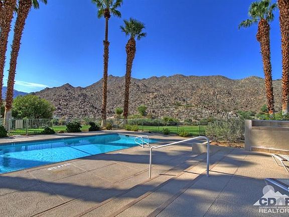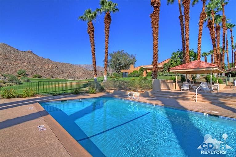 Enjoy up-close mountain views on this private site elevated above the pool and golf course. This freestanding home is located in a quiet serene cul-de-sac of highly upgraded homes. Enjoy entertaining or relaxing on the large patio area. Entry foyer opens to living/dining area adjacent to added family room with glass walls to capture the Views. A custom chefs kitchen boasting a professional range & Subzero fridge, granite counters and custom cabinetry. Master suite with built-ins has totally remodeled bath with his & hers vanities & walk-in closets. Guest suite with twin beds also has added area with Murphy bed, built-in dressers and a charming tile bath. The third bedroom is set up as an office / den with bath adjacent in hallway.
