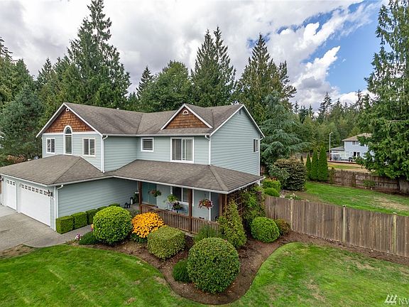 Nestled on 1/2 acre lot in Kackman Creek. 2,800+ sqft 4BR, Den, FR, LR, DR, 2.5BA. A/C, 2 FP. Huge bonus over 3 car gar. Extensive hardwoods from Entry thru Living, Dining, + Kitchen. Remodeled Powder + Den. Covered front porch, fenced back yd w/trex deck, koi pond w/water feature, 2 car shop w/office + finished storage up. Off street RV parking! Community walking trails and just about 5 minutes to SR-9 or I-5 Exit 210.