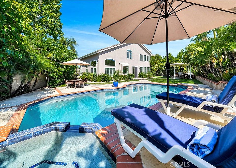 ***SPECTACULAR POOL HOME LOCATED IN THE PRESTIGIOUS NEIGHBORHOOD OF BELMONT RIDGE***PRIME END OF THE CUL DE SAC LOCATION***This stunning executive home shows meticulous attention to detail. It offers a seamless blend of elegance and functionality. From the moment you arrive, you'll notice the impeccable landscaping and private gated courtyard. The elegant entry features handsome wood flooring and an abundance of natural light flooding the open space. Impressive formal living room with high ceilings and a large front window overlooks the courtyard. The formal dining room with magnificent backyard/pool views is perfect for entertaining guests. The well-appointed kitchen provides functionality and style for the culinary enthusiast featuring beautiful white cabinetry, quartz countertops, custom stone backsplash, Thermador and Bosch appliances, and a center island. The cozy family room with a custom stone fireplace opens to the kitchen, offering incredible pool views. A custom-built wine room is perfectly showcased with a custom glass door for wine enthusiasts. The Main-level bedroom has a full bath with a walk-in shower and is ideal for in-laws or guests. Large laundry room with plenty of built-in cabinet space also has a sink and secondary refrigerator. The third car garage space was converted to an office for those who require privacy when working from home. The grand spiral staircase leads you to the second level. A stately primary suite with high ceilings overlooks the remarkable backyard and pool. The primary bath features a touch of elegance, offering white quartz countertops, white cabinetry, dual sinks, a vanity station, a walk-in shower, and a stunning sitting tub with a large walk-in closet. Two additional bedrooms share a secondary bath with dual sinks and a custom walk-in shower. A HUGE bonus room/5th bedroom with high ceilings offers a fantastic space for the kids. Luxurious outdoor living is yours in this backyard oasis! Your family will enjoy hours of fun in the beautiful, sparkling pool and spa! The entire yard is meticulously maintained with a lush mature landscape and a large grass area for outdoor play with a putting green. A separate covered patio with a built-in BBQ, outdoor speakers, and a seating area is ideal for outdoor entertaining. Additionally, 34 solar panels, a new roof, and a whole house water filtration system were added. This is the dream home you have been waiting for! ***So Cal living at its finest***