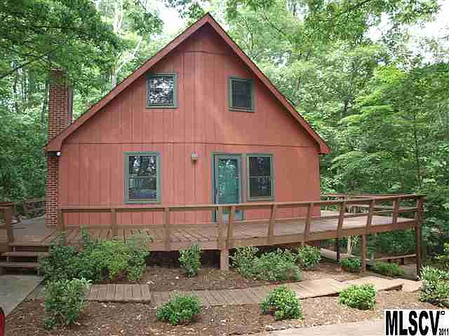 Wow! What a deal on this A-frame home on private .85 acre lot. Large living room with stone fireplace. Formal Dining Room. Heat pump new in 2012. Freshly painted. Main-level bedroom and hall bath. Two bedrooms up (one bedroom uses the hall closet). Wrap-around deck overlooks private inground pool. Basement den has fireplace with woodstove insert.