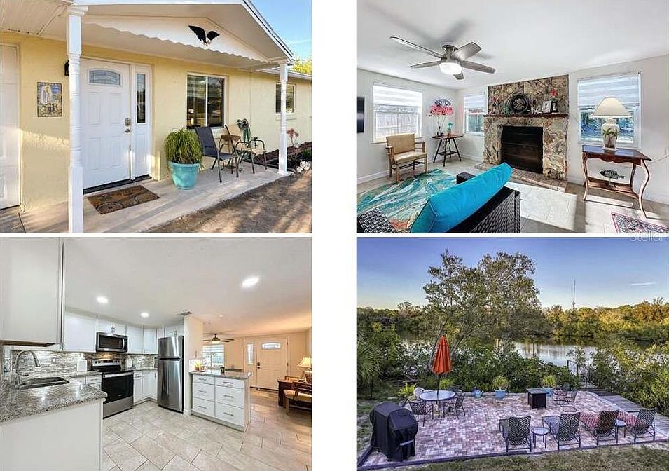 JUST REDUCED!!! CHARMING 2 B /1 B WATERFRONT BUNGALOW, the only one of its kind for sale on Oyster Bayou in New Port Richey, FL. As one reclines on their private dock, they are entertained by a virtual aviary, jumping mullet, and other nature-loving sounds. A pavered sun deck near the mangroves and dock awaits those who enjoy tanning. This overly large tropical property has plenty of room for a pool and Tiki hut. From its freshly painted exterior to a completely redone interior, this move-in ready gem is the perfect location for anyone looking for the ease of waterfront living. Enjoy sunsets in your canoe or kayak as you carelessly paddle your way to the Gulf. As one enters the delightful Florida room through all-glass French doors, they are greeted with a cozy wood-burning fireplace. There is plenty of light in this home. The large screened-in porch has a wide-screen TV mounted for your viewing pleasure and is the perfect spot to wind up your day. The home offers new appliances, newer windows, and front door. The roof was replaced in 2023, and the AC in 2020. Beautiful window treatments and stylish ceiling fans remain with the home. This delightful property is close to historic downtown New Port Richey. Take your golf cart or ride your bike and enjoy Sims Park and other wonderful places downtown. And, only one stop sign away from the home is Green Key Beach with its own nature preserve boardwalk and beach. This is a must-see and won’t last long...only about a 15 minute drive to Tarpon Springs! Great investment opportunity, too! No $ Down payment FHA loan may be available.