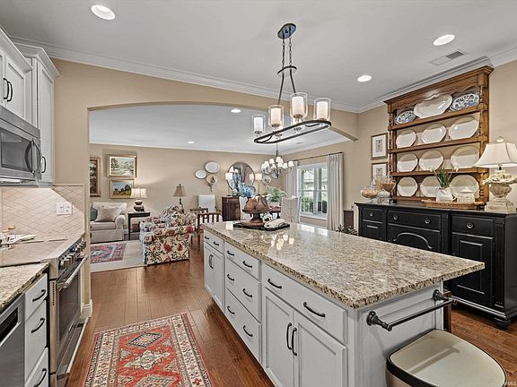 - Breakfast Bar, Ceiling Fan(s), Walk-In Closet(s), Countertops-Solid Surf, Crown Molding, Custom Cabinetry