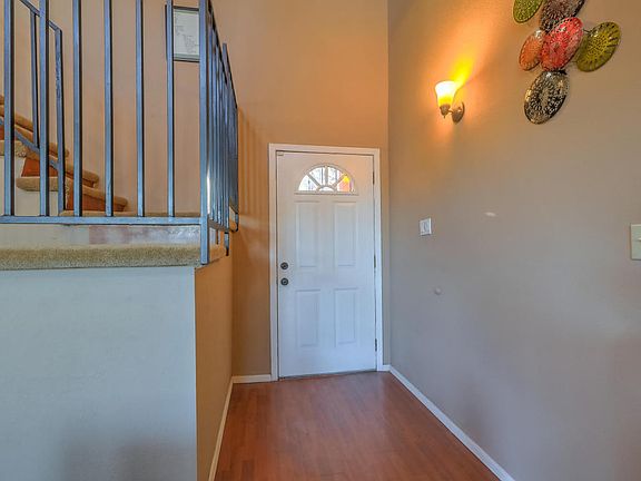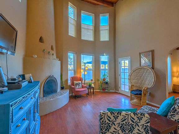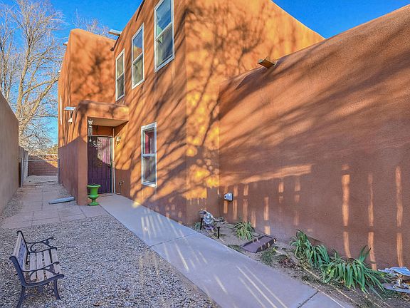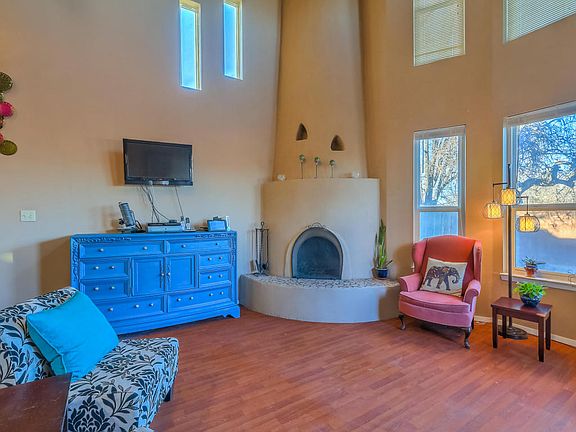 A high vaulted tongue & groove ceiling greets you as you enter this lovely home. Corner kiva fireplace to keep you toasty warm and large windows to take in the amazing views of the Sandia Mountains. Lots of natural light, large tile and laminate flooring on the main level. Separate dining room and a bedroom/bath on each level. The upstairs has a great reading nook or sitting area and the master has a large walk-in closet. The backyard is walled and private and has a very nice covered patio to enjoy your evenings. Refrigerated air to keep you cool in the summer, NO HOA and the roof was replaced in 2016! Very convenient location with easy access to the petroglyphs, open space trails, Cottonwood Mall and many restaurants. Come take a look at this cute and cozy home.
