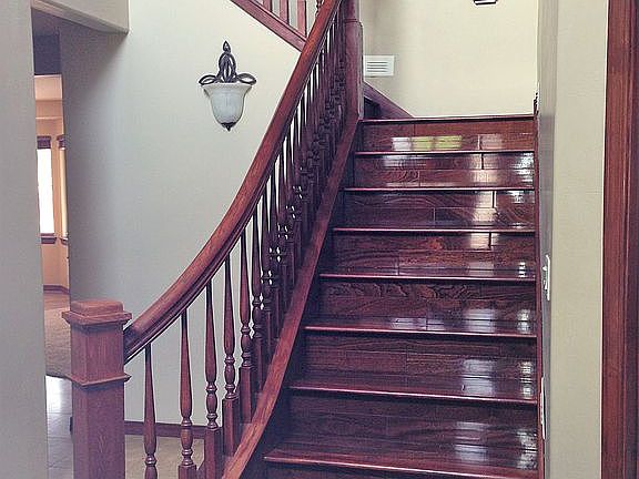 It is one of the few 3 car-garage homes in Ponderosa Trails and has no neighbors directly behind you. The entire house has in-floor heating which is a huge savings in utilities and warms your feet and body during the cold winter months. It has a beautiful wood staircase in the front foyer that takes you up to the 2nd story with huge bedrooms and lots of space. The master bedroom is downstairs for privacy and takes up a full wing of the home. The quaint family room is open to the kitchen. The kitchen has up-scale appliances with beautiful wood cabinets throughout. New washer and dryer included.