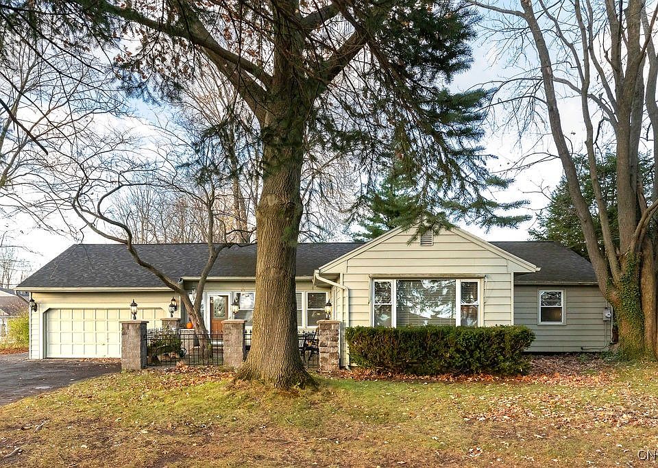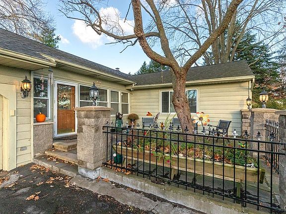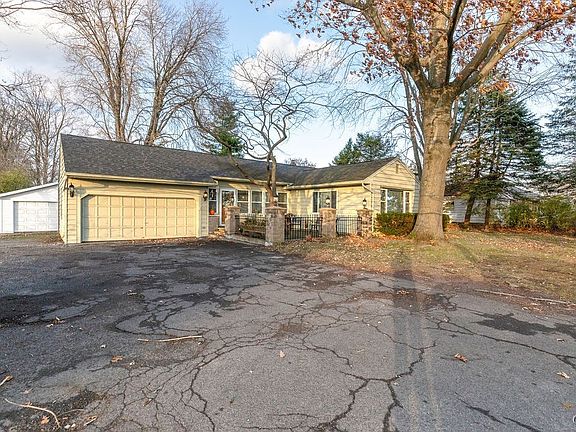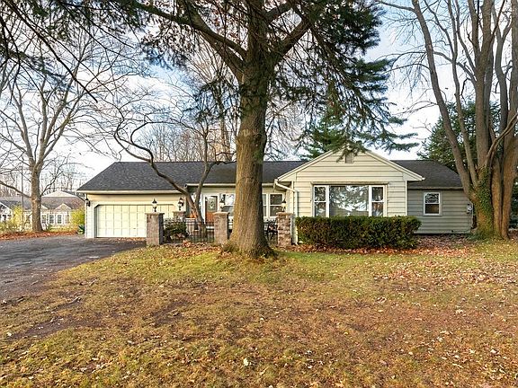 Amazing large 3 bedroom 1 1/2 bath ranch! Sits back off the road with double wide blacktop driveway and parking/turn around area. Such a warm and inviting home! Walk up to your new home through this pretty patio and right into your large eat in kitchen with two pantry/closets and plenty of cupboard and counter space. Half bath off of kitchen. This gem boasts radiant heated floors, great built-ins, hardwoods, very spacious rooms and so much bright and cheery natural light throughout. Walk up room off of kitchen with heat makes for a great 4th bedroom/office/playroom, or a nice place for yoga, etc... Formal dining room is so welcoming and just waiting for your special dinners. Large living room with electric fireplace that stays, plenty of natural light and lovely hardwoods. Nice primary bedroom with 2 more good sized bedrooms as well as first floor laundry. Updated full bathroom with granite countertop. Full basement with new heated gym room. Basement is just waiting to be fully finished to add even more living space! Roof is only 8 years old, hot water tank is 3 years old and air conditioning unit is only 2 years old. 2 stall attached heated garage with plenty of parking and shop space, as well as heated 24x24 detached garage with plenty of room for 2 vehicles and extra workspace. Both heated garages have electric service. Nice fully fenced backyard with above ground pool (installed 2020), large pool deck area as well as deck with seating area. So much to look at and take in when you get here! Move in ready and just waiting for it's new family!! Taxes shown without exemptions. Close to shopping, restaurants and so much more!
