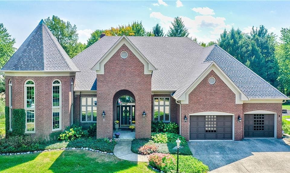 Feel the quality of this custom, brick home with soaring ceilings and stunning architectural details. Massive Great Room with vaulted ceilings, gas fireplace and wall of windows opening to the covered Veranda and deck providing extra outdoor living space. Huge gourmet kitchen with center island, adjoining breakfast and hearth rooms. Luxurious main floor master suite with updated bathroom and large walk-in shower. Private hallway provides direct access from the master suite to the unique 2-story, turret style room perfect for an office or nursery. Upstairs is a private wing with 2 bedrooms sharing a jack-n-jill bath plus a bonus room perfect for tv/play/bunk room. Basement offers additional family room plus bedroom (no window) and full bath.