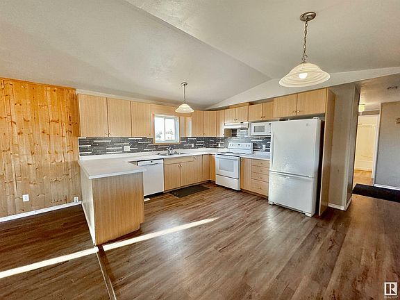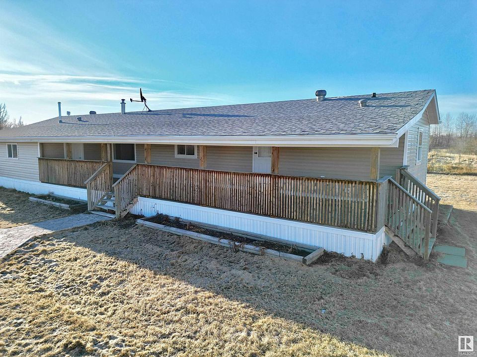 Amazing 4.99 acre fully fenced acreage only 2.5km from the town of Drayton Valley. 1485 square foot mobile home has 3 bedrooms, 2 bathrooms with a large addition and 48' x 10' covered deck. There have been so many upgrades: new roof, new skirting, new eavestroughs, new siding with additional plywood underneath, new furnace, new vinyl plank flooring, new stove, new dishwasher, and new front load washer and dryer. There are two bedrooms on the north end with a full bathroom. The center area has a large open concept living room/kitchen area with plenty of windows. The primary bedroom is large with a full 4 piece ensuite. There's a nice large hallway to the addition where you could have extra storage. The addition has a huge mudroom, flex space and storage room. There's a massive 30 x 24 heated and insulated garage with an engine HOIST! The property is fenced and gated for horses, goats, or my favorite merino sheep! There is also a $478/yr surface lease revenue!