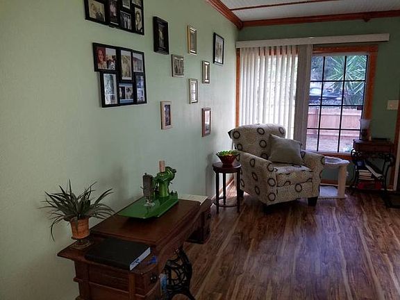 Leaded Glass Entry door to the Converted 2 car Garage....Everything is redone inside! Almost 1500sf, 3 bedroom, 2 bath home with Decorative Crown Molding throughout, new bathrooms, eat-in kitchen. NEW ELECTRIC, Newer AC (within 2 yrs), Wood laminate floors or Ceramic Tile floors, GRANITE counters, new fans, new lighting, new thermal pane windows, new gutters and downspouts,exterior paint and outdoor utility shed with loads of storage. Formal Dining Room, inside utility room, Split bedroom plan and a fenced yard with a patio/BBQ area. Located in Zephyrhills close to the park and easy access to shopping and restaurants.