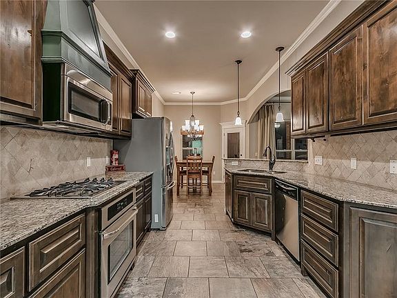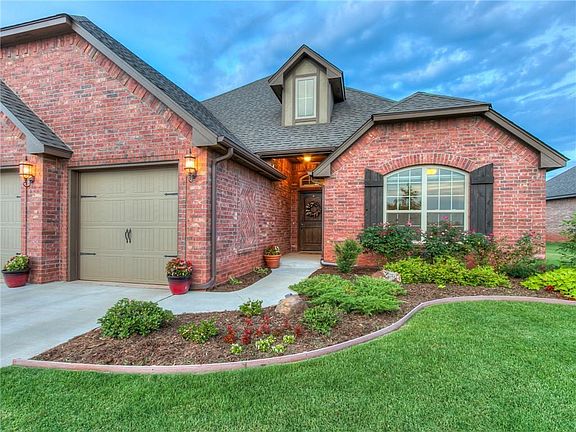 From the moment you walk in the front door, you will feel at home. Timeless wood floors, gorgeous granite, stainless steel appliances, gas stovetop, breakfast bar, ample storage throughout the entire home. A versatile floor plan which can suit your needs in any way you desire. An oversized master suite complete with walk-in shower, huge closet, and relaxing whirlpool tub. All secondary bedrooms are complete with ceiling fans. Tankless hot water heater, water softener, storm shelter, sprinkler system to water the gorgeous golf course looking grass, oversized garage & more!