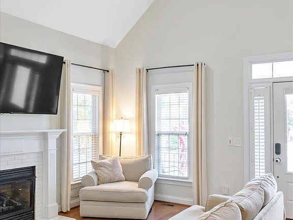 Absolutely adorable one and a half story home on over half acre lot. Enjoy evenings relaxing on the rocking chair front porch while looking across to the sparkling neighborhood pond. Main floor, open plan living with primary suite, two spare bedrooms, full bathroom, living room, kitchen, dining and laundry down. Large, bonus space, half bath and two walk-in storage spaces upstairs. Enter into the gorgeous living room with vaulted ceilings, and gleaming real hardwood floors that continue into the dining room and magazine perfect kitchen. Relax outback on the screen porch overlooking lighted fire pit area. Large, flat lot with mature shade trees and shed, perfect for entertaining, watching the kids play or letting the dogs run. This charmer is tucked away from the hustle and bustle of city life, but convenient to everything using the new access to the 540 extension coming soon, to take you anywhere in the Triangle with ease. No City taxes and low HOA!