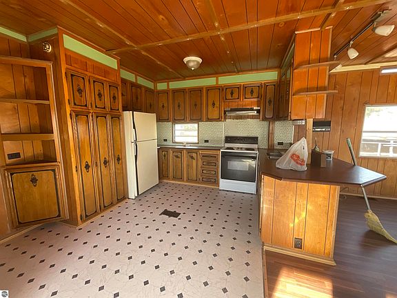 Vintage 1976 single wide on a full acre conveniently located just off of US-131.With new floors, bathroom vanity, newer roof and furnace this trailer has solid bones and is ready for a funky fun makeover! All the lakes, ski hills and snowmobile trails are just a stones throw away making this an affordable up north getaway or year round home. The wood burning heated workshop has ample amount or space for all your needs and will keep you cozy warm in those working winter months!