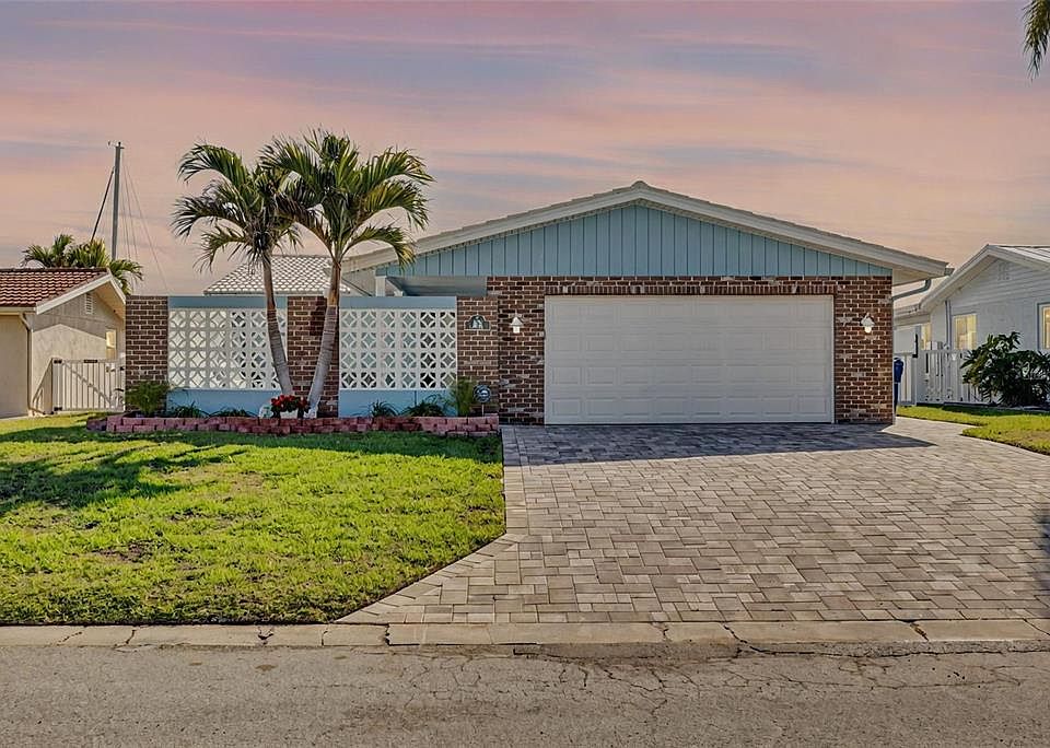 Welcome to this exquisite boaters Paradise!!! This waterfront pool home is located in the exclusive boating community of Gulf Harbors! Located on a quaint cul-de-sac and is now available to its next lucky owner. Lots of curb appeal with its beautiful landscaping, oversized driveway and pavered walkways! This immaculate 2 bedroom, 2 bath, 2 car garage pool home has 1,781 heated square foot of living space. As you walk up the paver driveway you enter into an expansive private courtyard that leads to the front door. Once you enter you are immediately welcomed into the open space with the kitchen, living and dining area that features a cozy wood burning fireplace, skylight and oversized island that look out to the expansive sunroom. Entire home has been freshly painted inside and out. The kitchen is beautifully designed with solid wood cabinets, ss appliances (2024/2025) a center island that offers seating for up to 9 with beautiful granite countertops that run up the wall as a backsplash adding a stunning high end look. The master bedroom has a generous walk in closet, built in storage, sliders leading out to the back patio and private en-suite. Both bathrooms are nicely updated and feature walk in showers and stunning quartz countertops. Rest easy knowing this home has hurricane windows, doors including the garage door being impact rated which qualifies for wind mitigation discounts and offers peace of mind. The Salt Water pool (2020) has a pebble tech finish and the entire deck is covered in beautiful pavers. Next to the pool is a covered patio that is the perfect spot for entertaining and can accommodate a large number of guest comfortably and offers captivating views that you can't resist. You’ll feel you’re on vacation every day in your own backyard oasis with your 58FT of SEAWALL with two(2) 10,000lb boat lifts (2017) with electric, water, a jet ski port and concrete steps into the water making it easy to launch your own kayak or paddle boards. The home has many updates including a Brand NEW (2025) Trane HVAC, painted garage flooring, sub panel with a generator hook up, tile roof (2016), flat roof (2025), electrical panel updated (2015). In the side yard you will also find 2 storage sheds, a dog door and dog run along with a lemon tree and a lime tree. This home has been loved and very well maintained and it shows! This property is just around the corner from the open Gulf and will accommodate just about any size boat. Deep water Canal with direct access to the open Gulf waters within MERE minutes. Residence can join the Gulf Harbors Private Beach Club with its pristine sandy beach and cabanas, picnic tables, bathrooms, and charcoal grills and take in the spectacular sunsets for just $200.00 annually. Gulf Harbors amenities also feature an optional Civic Association membership for $125 a year which provides various community events and access to join various clubs such as Women's club, card club, social club and various others. For an additional small fee the community has two community boat ramps as well. The proximity to the open waters of the Gulf makes this property ideal for boating enthusiasts. Excellent fishing, diving, water sports, shelling, Island exploring right outside your back door! Conveniently located near dining, shopping, and open waters, this coastal haven, and fisherman's paradise provide a lifestyle beyond compare. Don't miss out on the opportunity to make this your forever home—schedule a showing today!