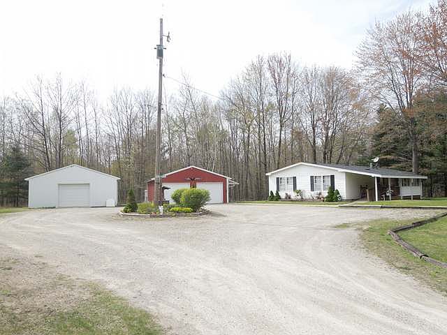 Slice of seclusion with this 10 acre parcel of privacy, 3 bedroom, 2 bath home.Very nicely maintained and several new quality blinds just installed. All the appliances are included,newer enclosed in porch is a 8X16 and a covered porch as well. Newer carpet in the dining/living area, move in condition. 2 pole barns, a 24X24 and 24X40,and 2 sheds behind the pole barns. Bonus area where a trailer once was has electric, a well and septic and 2 sheds closer to the entrance of the property. Very pretty setting! ESTATE SALE IS THIS MEMORIAL WEEKEND! FRI- SAT- SUN- MON 9am to 7pm come take a look!!