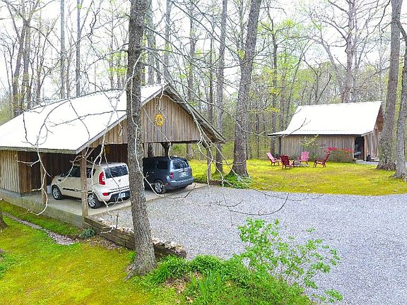 5 ADDITIONAL ACRES ADDED! YEAR ROUND PRIVACY AND SECLUSION. Welcome to this beautiful sanctuary in the Tennessee woods! This unique home sits on just under 20 acres and is surrounded by mature trees as well as a carpet of bright green moss. In the spring and summer, frogs sing in the small wet weather pond behind the house. The outbuildings have matching siding and the metal roofs were replaced in 2020.. The home comes with an enclosed garden and chicken coop. There is a covered front porch for enjoying the sights and sounds of nature. The property has a detached workshop, two carports, and two storage buildings, all with matching rustic siding.