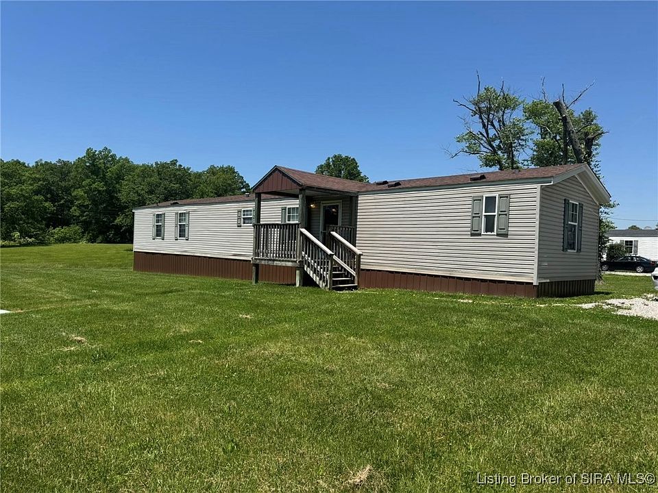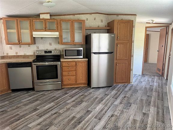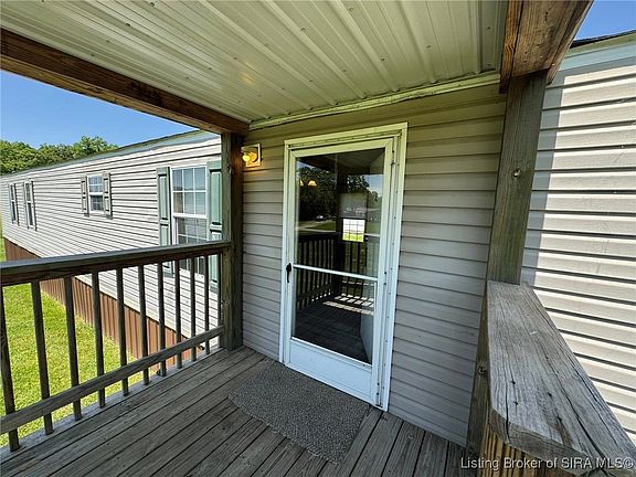 Own this home with no money down. 100 % financing available. Very nice immediate possession single wide 16 x 80 mobile home situated on a corner 1.232 acres in the country. Covered front porch. Living room with open to eat in kitchen. The kitchen comes with refrigerator, stove/oven, and dishwasher. The owners' bedroom is large with a full bath and separate shower, walk in closet. Laundry area. The other 2 bedrooms are separate with a full bathroom. The back door deck accesses the deck. This property is close to Scottsburg or Henryville interstate access. Must see, move in clean and ready.