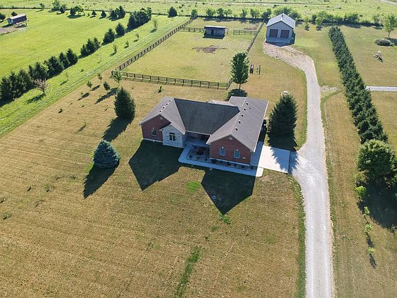 Brick ranch, 2,461 SF w/full basement, many upgrades on this beautiful home. Great room w/vaulted ceilings & stone fireplace, kitchen has custom cabinets, LG, SS appliances. Large master bdrm attached bath w/shower, huge tub & two vanities. 32x48 barn w/roll up front doors, concrete floor, fenced area with small run-in barn.