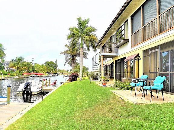 Turnkey, furnished, beautifully updated condo on large intersecting canal with Gulf access. Wooden docks are available for usage for NO EXTRA charge. This first floor features 2 great size bedrooms and 2 full bathrooms that were recently updated, including newly installed marble countertops. The condo includes 1 carport and a storage unit. The patio deck is overlooking the canal and is great to enjoy all year round. All appliances are new and stainless steel, including the oversized sink. WASHER and DRYER come with the purchase. The whole unit has been freshly painted and professionally cleaned. Other updates include new fans in all rooms, plantation shutters, new Lanai screen, new GE 200 amp electric panel, updated outlets, etc. Great quality furniture is included and valued at $20,000. Cable is included in HOA. Amazing location thats close to downtown Cape Coral, the Yacht Club Public Beach, the fishing pier. Its a 55+ Community.