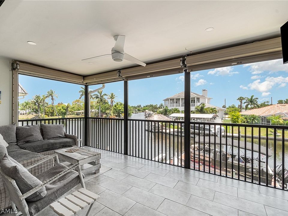 Seller to cover condo dues through December 2025! Enjoy no condo dues until 2026, offering significant savings and peace of mind. This rare offer provides added financial flexibility, making it the perfect time to invest in this property. Don’t miss out on this exceptional value! A beautifully remodeled 3-bedroom, 2-bath Gulf access condo offers luxurious living with stunning views. Boating enthusiasts will appreciate the ease of a 0.6-mile, 8-minute boat ride to open waters with access to the Gulf of Mexico. A boat dock can be assigned to you for your personal use at no extra charge and floating boat docks are allowed. Condo includes NEW cabinets in kitchen and bath, HVAC System, refrigerator, ceiling fans, luxury vinyl plank flooring throughout, lanai tile flooring, recessed lighting, interior doors plus newly painted walls and ceilings. Enjoy this top-floor, corner unit, cozy fireplace and southern rear-facing views. A spacious primary bedroom includes a walk-in closet, and the primary bath features a shower and new vanity with granite counter. The 3rd bedroom is currently a studio/recording room which will be converted back to a bedroom for the new owner. The kitchen boasts granite countertops, an abundance of soft-close cabinetry and a pantry. The laundry room is conveniently located just off the kitchen. Step outside through the pocketing sliders to your screened, tiled lanai, perfect for enjoying spectacular views of the intersecting canals. The lanai features both manual and electric shutters, offering convenience and protection against weather conditions. You'll find the heated pool along the canal with the pool area and seawall illuminated by inviting lights. The exterior of building was recently painted and has a brand-new high efficiency roof. A personal outside storage locker, conveniently situated next to your 3-sided covered carport, can accommodate large pool/beach items and much more. Furnishings and drive-on floating boat dock are negotiable. Don't miss out on this incredible opportunity to own a stunning condo conveniently located near shopping, dining, entertainment and sandy beaches. Per Seller, no flooding after Helene & Milton!