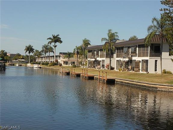Newly renovated vacation rental 2d floor corner condo w. great water views & sunsets overlooking pool and gulf access intersecting canals 8 minutes to river and 1 block to Bimini Basin-2 bedrooms 2 full baths w. storage unit. New furniture, paint, tile.Two new flat screen TVs (55 and 32)on walls, new tile floors installed on lanai and Dining room. Appliances like new. MASTER HAS QUEEN BED;GUEST BR HAS 2 TWIN BEDS; LR has sleep sofa. Master has walk in closet w. organizers. Master Bath has shower. Guest Bath has combo tub. Pleasant stairway-7 steps, a landing, then 7 more with handrails on both sides. Carport closed on 3 sides & roof, so car stays cool. One bridge to river minutes away,12'5 clearance. 4 skylights in baths & hall-stairway give plenty of light. Winding exterior stairway in rear down to pool and dock. Rent includes Wi-Fi, cable TV, exterior extermination, and all utilities. Dock avail through condo ass'n at no extra fee. Great convenient location 5 minutes to Yacht Club, beach,actvities, shopping,restaurants and bridge to Ft. Myers.At least 1 tenant must be 55+.