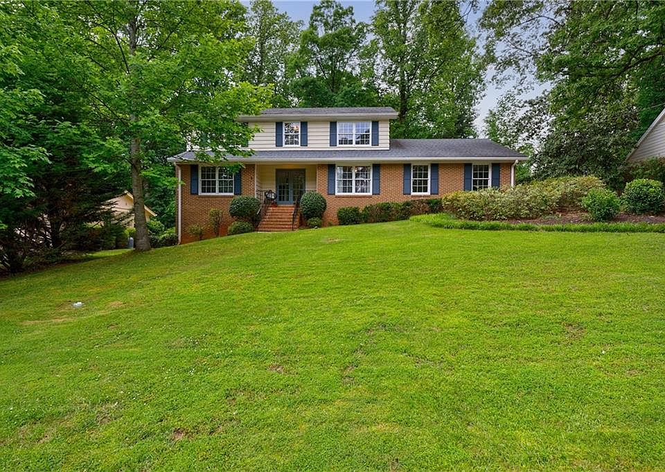 Welcome home to picturesque Windhaven Court located minutes from Dunwoody Village, JJC Atlanta, sought-after Dunwoody Elementary and an abundance of swim & tennis clubs! This brick traditional style home features a bedroom on the main, two living spaces, fresh paint and brand-new carpet throughout. Exterior of home boast a covered front patio with beautiful French door entry into a captivating light-soaked two-story foyer. Upon entry you are greeted with an abundance of nature light and so much space! To your left is the oversized living area, seperate dining room with chair molding and original chandelier. Full bathroom with updates, ample sized bedroom, large laundry room off kitchen and the coziest of dens featuring built-in cabinets/bookshelves, wood burning fireplace and French doors leading to level private backyard. Three bedrooms upstairs, two secondary and showstopping oversized primary bedroom en suite featuring sitting area, walk in closet and fully renovated bathroom with tile glass door shower and double vanity. The backyard is private, flat with a wooden shed tucked away for extra storage needs. Full daylight walk out basement with windows, high ceilings and so much potential! One of the best cul-de-sacs in a prime Dunwoody location!!