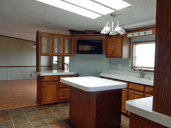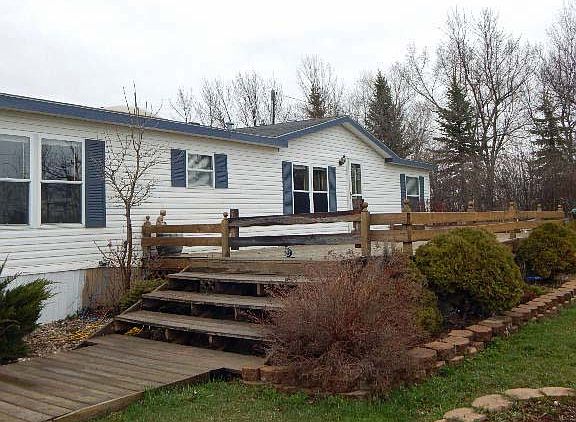 Just outside city limits...but close to everything! This spacious manufactured home sits on frost pillars per owner and approx. 2 acres of land with room to roam. Open floor plan features spacious living room, dining and kitchen, large master suite with full bath and second bedroom and large 3/4 bath. Newer furnace, hot water heater, A/C unit, kitchen and master bath counter tops, appliances and more. Large deck, heated one stall garage/shop, shed with loft storage; many perennials and trees to enjoy.