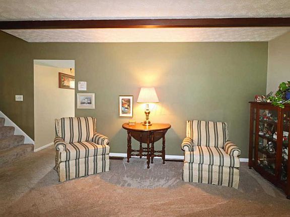 This expansive 4-level split is full of surprises & wonderful living space. Excellent curb appeal with mature trees & covered front Porch. The main level has a large Living Room with beamed ceiling & fireplace. Family Room/In-Law Suite addition with French doors to the Patio, built-in Kitchenette & adjacent Full Bath with shower. Handicap access features include shower bar & ramp from Patio/Garage area to house. Steps down to formal Dining Room & large Kitchen/Dinette, Half Bath, separate Den/Office & door to the yard. The upper level offers 3 generous BRs & a 2-room Full Bath with tub/shower. Basement level Laundry area & storage space with shelves. Huge concrete & paver Patio, perennial gardens, oversize 2-car Garage & extra parking area. If you need more space, this is the place!
