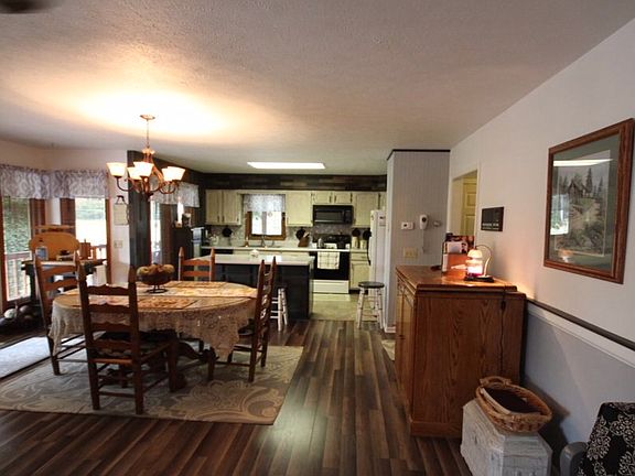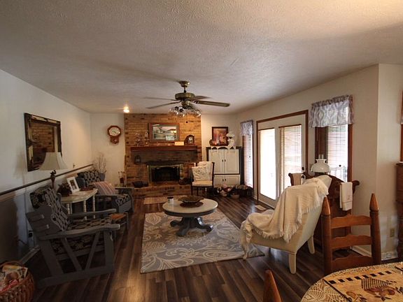 Gorgeous Ranch style home located on over an acre. Very meticulous landscaping and a beautiful wrap around porch with several ceiling fans, great for afternoon sitting. 3 Br, 2 1/2 BA with plenty of room for entertaining. This home offers an open floor plan kitchen and living room with a separate den with gorgeous vaulted wood ceilings, wall and sky lights! Huge basement that is heated and cooled and has plenty of room for all your crafts and or extra space with a bathroom. There is a wood furnace with a thermostat in the basement that will heat the house. Also has an outside detached garage (new metal roof) with a Fisher woodstove and a covered carport (16 X 26) that is attached. There is a workshop with plenty of electrical outlets behind the 2 car garage.