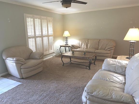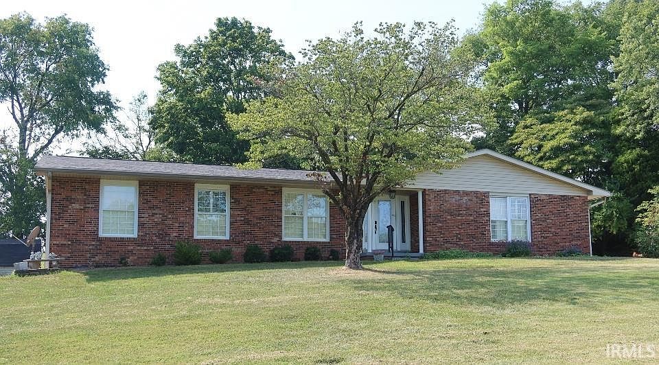 This remodeled 3 bedroom home on 0.4 acre is just minutes from town. As you enter the home, notice the extra features like the lovely entry door and side lights, the crown molding, and shutters on the windows. The living room opens to the remodeled dining area with a long serving bar and built-in cabinets and the remodeled kitchen which has lots of cabinets, solid-surface counters, stainless appliances, tile flooring, tile backsplash, and an island. The laundry closet is in the kitchen area and has cabinets. The utility closet has built-in shelving. Just off the kitchen is the family room (currently used as a dining room). This room opens to the covered patio and the back yard. There are 3 bedrooms, one with a walk-in closet. The remodeled bath is a dream. You can enter from the master bedroom into an area with a private commode and sink and you can enter from the hall into another area with a private commode and sink. In between the two private areas is the jetted tub/shower combination and a mirrored linen closet. There is also a linen closet in the hall. Completing the home is the 2 1/2 car garage with built-in shelving and pull-down attic access. The lovely back yard has 2 yard barns. Includes: Window treatments, bathroom mirrors, ceiling fans, kitchen appliances (refrigerator, range/oven, dishwasher, microwave, disposal), washer, dryer, garage attached shelving, electric garage opener, 2 yard barns. Also includes one-year Cinch Home Warranty ($488.00 value). Per owner: 2023-new roof; 2022-new motor on septic aerator, new computer "mother board" on water heater; 2017-full kitchen remodel and new kitchen appliances; 2015-full bathroom remodel; 2013-new heating and central air conditioning; 2006-new water heater; new concrete driveway, two electric panels, newer replacement windows, property is connected to German Township Water. Square footage is per Assessor of Posey County. All square footage and measurements are approximate and not guaranteed. .