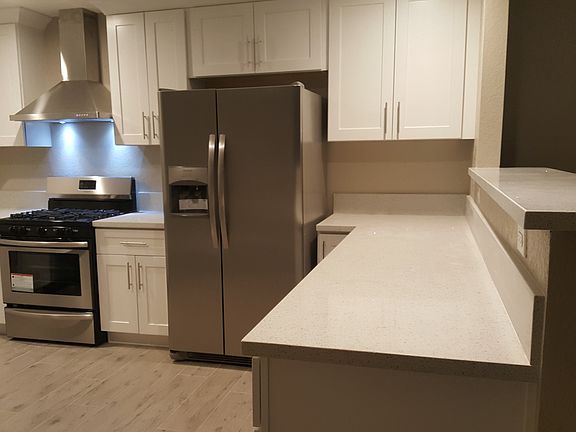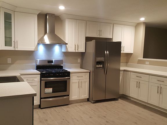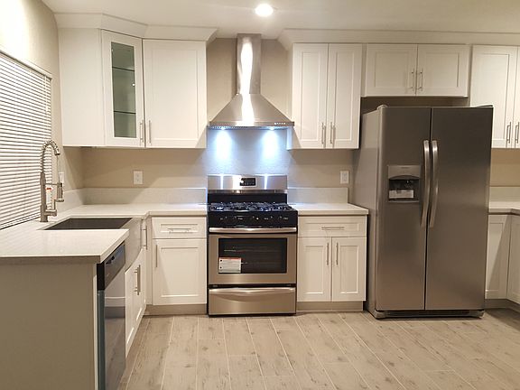 1 STORY STUNNER WITH 4BEDROOMS, 2 BATHROOMS, AND 2 CAR GARAGE HAS BEEN COMPLETELY REMODELED - GORGEOUS UPGRADED BRAND NEW KITCHEN WITH QUARTZ COUNTER TOPS, BREAKFAST BAR, STAINLESS STEEL APPLIANCES AND BUILT-IN HOOD FAN , BEAUTIFUL BATHROOMS WITH QUARTZ TOPS, ALL NEW DOORS, AND FRESH 2-TONE PAINT INSIDE AND 3 TONE PAINT OUTSIDE, BRAND NEW WOOD LOOK TILE & WOOD LAMINATE FLOORING THROUGHOUT, NO CARPET HERE- MAKE THIS BEAUTY YOUR HOME TODAY!!!