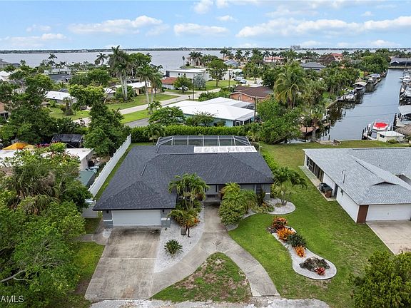 Completely Remodeled Pool Home in Cape Coral’s Premier Yacht Club Community! This stylishly updated 3-bedroom, 2-bathroom home has a 2-car garage. Unbeatable location within walking or golf cart distance to Cape Coral’s only beach, waterfront dining, nightlife, and recreation. Enjoy 1,966 square feet of living space (2,400 SF total) with a spacious lot offering privacy, water views in the back without the high price tag! So close to the Caloosahatchee River, you can enjoy the peaceful sounds of seagulls, pelicans, and gentle waves! The home’s open-concept layout features a bright and updated kitchen, a spacious living room, and sliding glass doors that lead out to a private pool oasis. Imagine watching your favorite movie while enjoying views of your updated pool, complete with travertine decking, stylish glass tile, built-in bench seating and table, and a screened-in lanai with plenty of room for sunbathing, relaxing, and entertaining. The spacious primary suite features an updated en-suite bath, while three additional bedrooms are ideal for guests, family, or a home office setup. Furniture is negotiable, making this a convenient furnished option for seasonal living or short-term rental. Plus, no HOA and no restrictive community rules or high fees! Recent upgrades include: a newer roof, replaced lanai doors, and modern interior updates throughout.