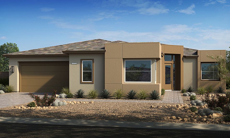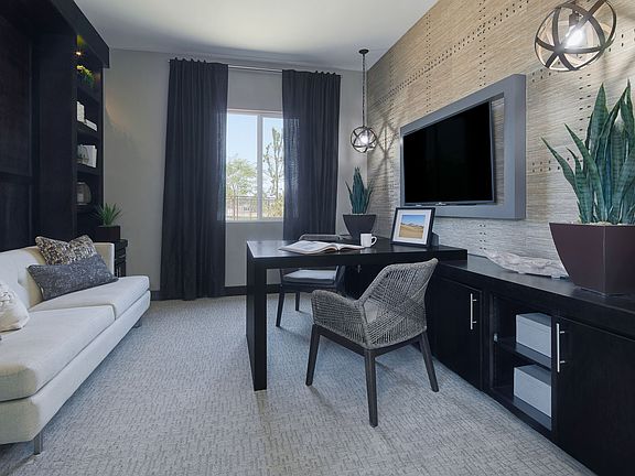 Ready Now! Don't miss the opportunity to own a model home! The Plan 8-Topaz in Ovation at Mountain Falls is an expansive single-story home offering 2 bedrooms, flex room, 2.5 baths, 2-car garage, and 2,693 sq ft of well-appointed living space. Featuring an open-concept layout, the gathering room flows seamlessly into the island kitchen, dining nook, and outside to the large, covered patio. Enjoy the generous sized owner's suite with an oversized walk-in closet and spa-inspired bath. A versatile flex room near the entry is ideal for home office or den. Structural options include: secondary suite and upgraded owner's bath with tub and dry off space. and 12 foot pocket door in great room. Model home sale at 4925 E Cactus Canyon Drive includes: washer/dryer, fridge, media equipment and curtains!