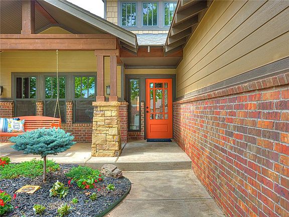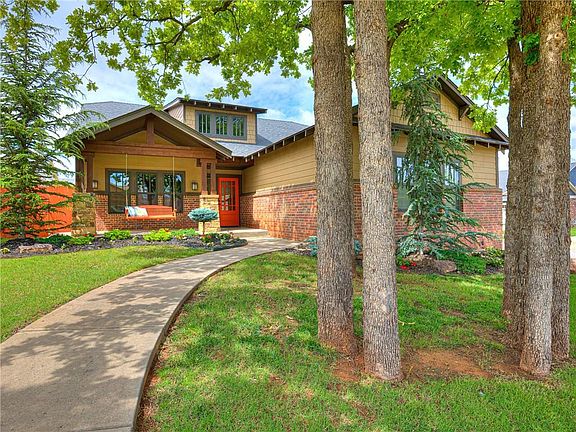 WELCOME HOME to your beautiful, 2012 Parade of Homes ,3 bed,+Study, 2 bath, 3 car garage, Craftsman style home on corner lot in sought-after Arbor Creek neighborhood. Featuring hard wood through most of the home, large study with views of the front yard & porch, living room with cathedral ceilings, beams, pre-wired for surround sound, 2 story, stacked stone fireplace, dining with built-in storage bench for seating and kitchen with breakfast bar, granite counters, pantry & gas range. Primary Suite has walk-in closet with built-in dresser, double vanities with granite, shower & jetted tub. Guest bath has beautiful granite counters and tub/shower. The spacious garage has epoxy sealed floors, storm shelter, upper storage shelving that can be lowered. This energy star + rated home also has extra attic insulation and germicidal UV light in the HVAC system. Located within 1-2 miles from 135, SamsClub, shops, restaurants, hospitals and Lake Arcadia. This home is even more beautiful in person!