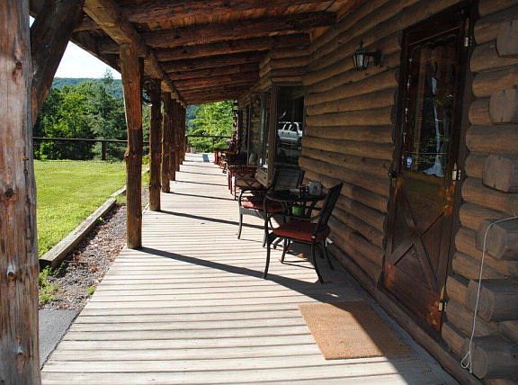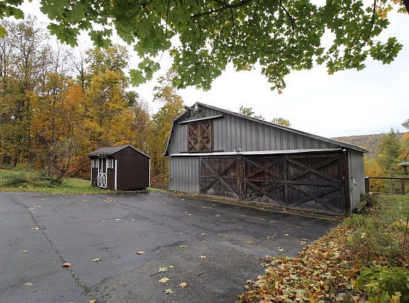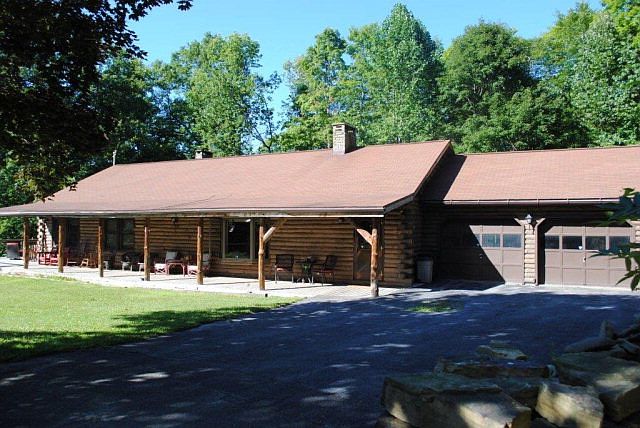 This ranch style log home nestled in 18 acres of well maintained woods & paths, is a rare! Location makes for an easy commute to Watkins Glen & Ithaca. The interior features an open floor plan w/a 2 sided stone fireplace, hardwood & pine floors, updated kitchen, stainless appliances. Master suite w/private fireplace, sliding glass doors to the private/open (new)decks & porches w/beautiful wood & hillside views. Full walkout basement with high ceilings could easily be finished for additional living space. Oversized 2 car garage & a barn for additional storage. A nature sanctuary!
