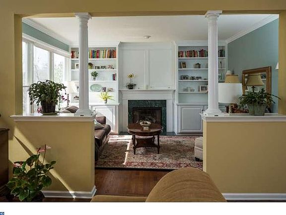 This spacious Traditional four bedroom brick front colonial has an air of sophistication yet a warm family feel. The home has extensive upgrades and millwork, crown molding, many built-ins and hardwood floors on the main floor. The home features an open floor plan that allows you to enjoy family and friends while you work in the renovated kitchen that features upgraded cabinetry, granite counter tops, tile backsplashes, center-island and stainless steel appliances. The breakfast room and family room have volume ceilings, walls of windows and a walk out to the paver patio. Enjoy reading in front of the fireplace in the adjoining den that features built-in bookcases. The dining room features wainscoting and crown molding. The main floor library/office has glass doors with transoms and built in bookcases. A powder room and laundry room complete the first floor. Upstairs the spacious master suite features a tray ceiling, and a sitting area with a palladium window and a stunning newly remodeled spa like bathroom that features marble floors, vanities and walk in shower. The bathroom also features two separate vanities, one with a makeup table, and a soaking tub. There are three additional bedrooms and a recently remodeled hall bath on the second floor. The basement is finished. The property is located on a cul-de-sac and has professional landscaping, New roof in 2013, new HVAC units in 2014, new master bath 2013, new hall bath 2012, new kitchen 2009 . Just a short walk or bike ride to public parks and close to Doylestown Boro. Located in award winning Central Bucks School District.