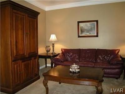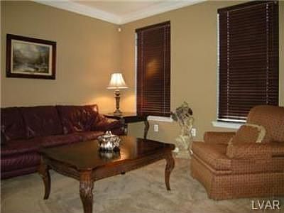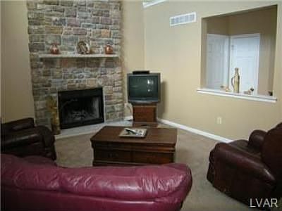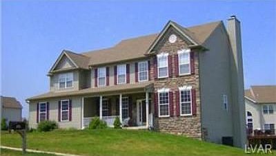 Make an appointment to check out this beautiful 4 BR, 2.5 bath home loaded with charm and pizazz!!! Great layout with wonderful architectural features including nine foot first floor ceilings, hardwood floors, crown molding, cathedral ceilings, and more! Stunning two story family room with floor to ceiling stone fireplace. Try out Rachel Ray's latest recipes in the ultra kitchen with upgraded forty inch cabinetry, tile floor and backsplash, Corian countertops, and island. Inviting master suite with vaulted ceiling, oversized walk-in closet, and bath with soaking tub, dual sinks, and shower. Private first floor office and nice laundry room off garage. Walk out lower level ideal for finishing. Freshly painted, move-in ready! Five minutes from I-78 and other major thorofares! Southern Lehigh schools!! And as a bonus, enjoy the nearby Promenade Shoppes and walking/biking trail!!