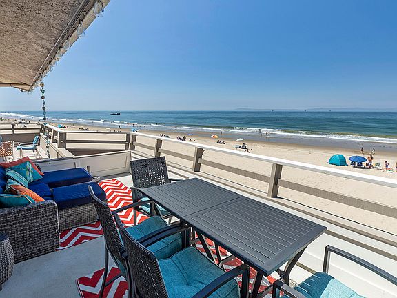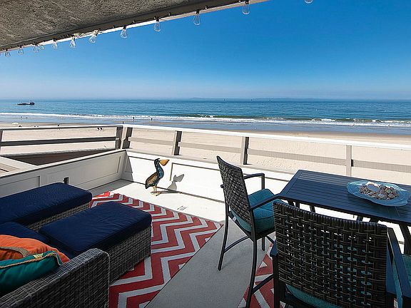 On the Sand! Panoramic ocean, island & coastline views are enjoyed from this airy & bright beachfront condo on the sand in the classic beach town of Carpinteria, CA. Situated on the top floor with unobstructed views, this delightful & sun~drenched single level condo offers 2 brms & 2 full baths. Featuring floor to ceiling windows to the fabulous views, 2 cozy fireplaces & high ceilings, this fun beach house is in move~in condition. A convenient laundry room easily accommodates a full size washer & dryer & multiple storage cabinets. A large private seaside balcony invites indoor/outdoor living and afternoon naps caressed by gentle sea breezes.This beach getaway is located on Carpinteria State Beach, known as ''The World's Safest Beach'' given its extremely gentle slope into the ocean.
