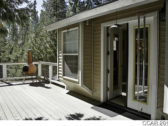 Nestled in the tall pines, the setting of this wonderful 3-bedroom home allows you to enjoy your privacy on one of three decks. Kitchen has heated floors w/timer, Jenn Air dual range convection oven. Bathroom redone with tile floors. Newer carpet w/warranty. Master bath already plumbed. Two car garage AND 2 car carport. Roof (40 year) and windows redone in 2009. Pole barn on property. Horses okay. Ready for you to make it home.