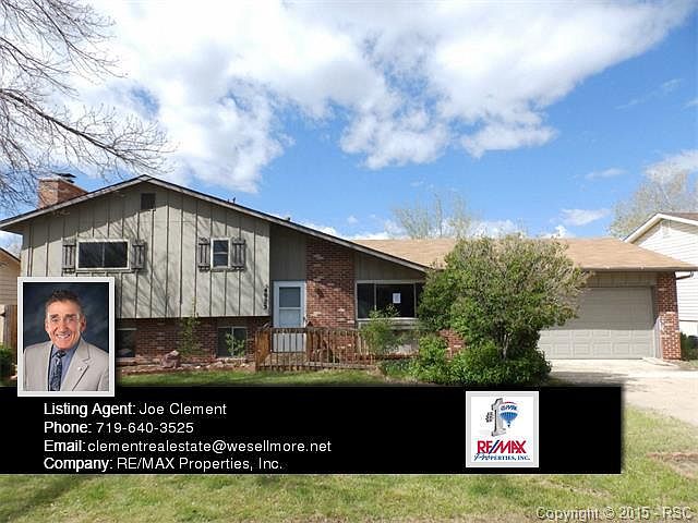 Spacious tri-level convenient to everything! Bright and open living room with laminate flooring continues into the dining and kitchen. Walk-out of the dining room to the patio and large backyard. The lower level hosts the L-shaped family room with cozy fireplace. You will also find the laundry room and a T-bath on the lower level. Upstairs is a full bath, the spacious master suite with private T-bath and dual closets, plus two additional bedrooms. Listing Agent: Joseph J. Company: RE/MAX Properties, Inc. Phone: 719-304-4929 Email: clementrealestate@wesellmore.net