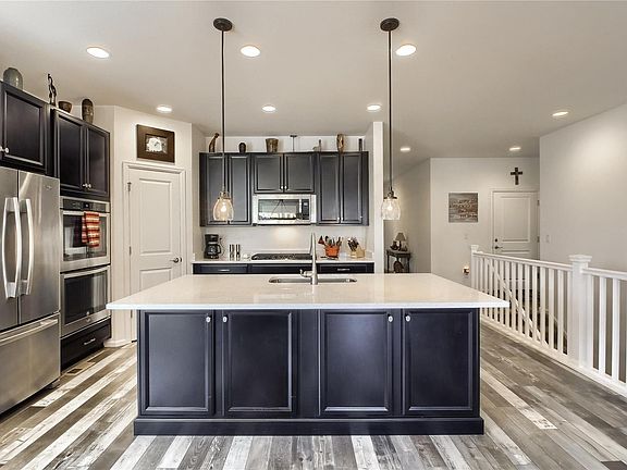 This is the home that stops you in your tracks! Very open and upgraded 3 bedroom + study ranch home with a 3 car garage and offers a TON OF COOL FEATURES! Grand great room with a very generously sized family room, dining area and a STUNNING entertainers' GOURMET kitchen! Large kitchen island draped in espresso cabinetry is the key to this kitchen with expansive white quartz counters and cabinets. Great master bedroom with adjoining master bath and walk-in! 2 secondary bedrooms in the front wing have a bathroom separating them. The main floor study is tucked away with 10-lite French doors - perfect work space! Outside, the entertaining CONTINUES! Very large covered composite deck for shady sitting and a full length sculpted patio for sunshine and there is even a fire-pit space! If you are a dog lover, check out the dog run on the side with ramp and door! There are even raised gardens to you can get your green thumb going! This home is absolutely AWESOME! Lots more to discover....
