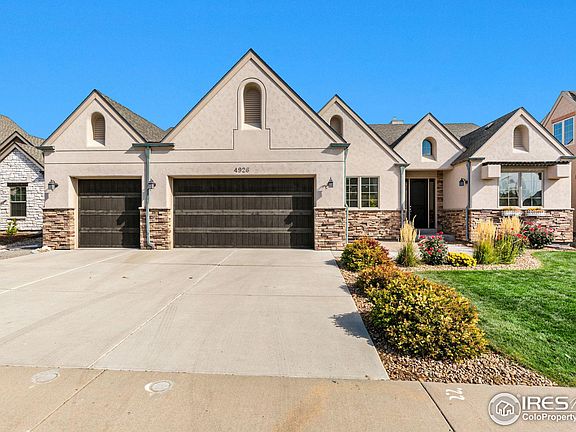 Take in the eye catching curb appeal of this stunning Le Jardin home built w/the highest quality materials & design by Luxury Homes of Northern Colorado. Welcoming open plan boasts rich wide plank Kahal Supreme Sweet Birch hardwoods thru kitchen, dining, & living. Gourmet kitchen w/loads of prep space & dbl oven. Vaulted great room bathed in natural light w/custom gas FP. Fully finished bsmt. Spacious covered back patio, gas firepit w/extra patio, irrigated garden beds & beautiful landscape