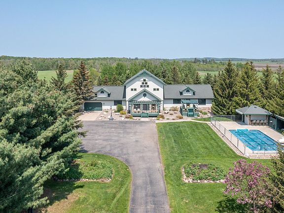 Experience the best of rural living in this beautiful 3-bed, 3-bath home situated on 40 acres. The home's ash wood flooring, stone fireplace, and open floor plan provide a warm and inviting atmosphere, while the loft and multiple decks offer great views of the surrounding landscape. With fiber internet running to both the home and outbuilding with office, working remotely is a breeze. Enjoy summer days by the pool w/cabana, or explore the possibilities of a hobby farm with multiple outbuildings, including a detached garage w/guest quarters, workshop, 24x60 shed, horse barn, 2 chicken coops, irrigated garden & orchard w/apple trees and 20 tillable acres. Located near many lakes and with an additional 80 acres of hunting land available, this property is a dream come true for outdoor enthusiasts.