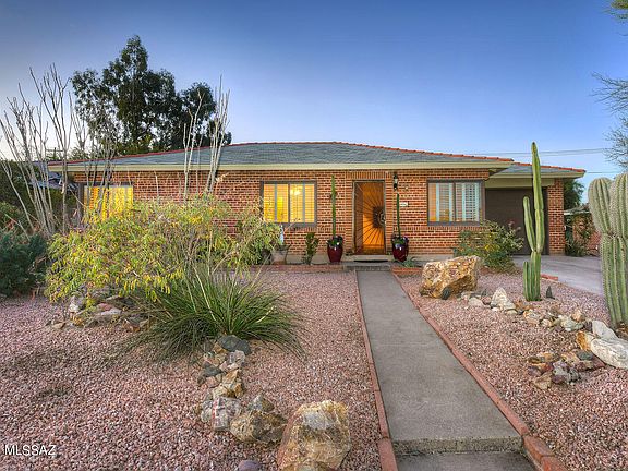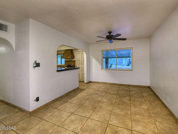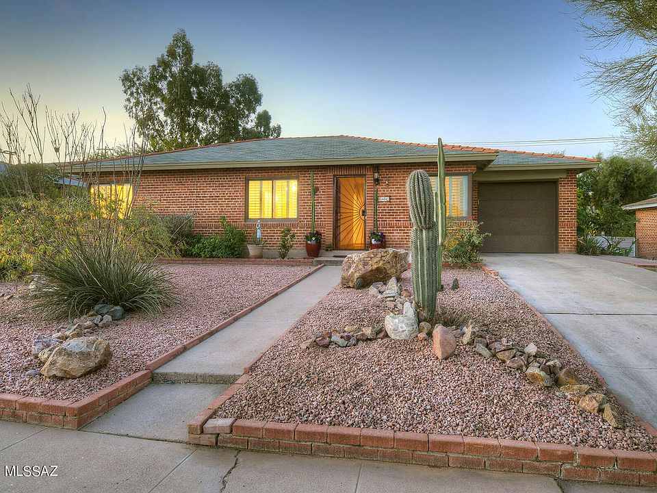 Charming 3 bedroom 2 bathroom home. Updated & freshly painted. Ceramic tiled floors and baseboards throughout. Custom kitchen w/pine cabinetry tiled backsplash, NEW Stainless steel appliances. Primary bedroom has an ensuite bathroom w/stone tile and shower surrounds. 2 good sized bedrooms and updated bathroom w/ stone tile & copper sink! Large open living area. Covered patio & large fenced backyard canopied by mature Mesquite trees. 1 car garage!