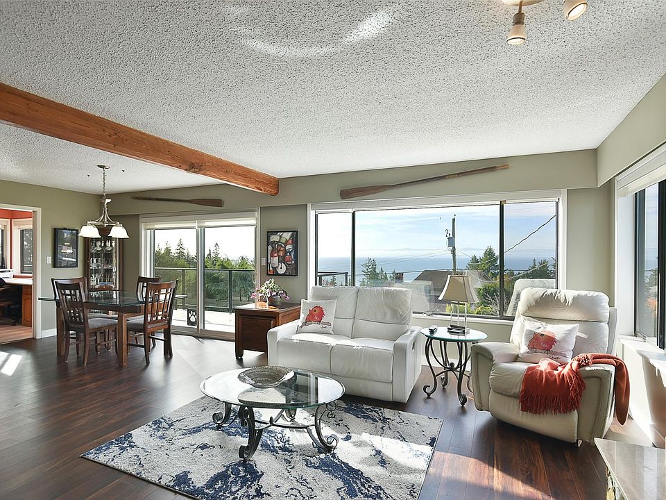 Bask in sweeping ocean views and spectacular sunsets from this southwest facing coastal home. Sunlight pours through expansive windows into the spacious and airy living spaces warmed by a gas furnace and fireplace. Step onto the wraparound deck, partially covered and enclosed, for year round relaxation and endless views. The lower level offers a licensed turnkey vacation rental with the option to include the furnishings and an established VRBO listing. Mature landscaping frames a fenced area, great for kids or pets, while a double carport and extra parking fit a boat or RV. Situated in sought after Davis Bay, renowned for its sandy beach, the culinary delights of summer markets, unbeatable sunsets and the boardwalk buzz, it is by far the place to live.
