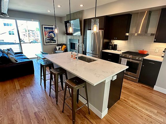 Brand new in 2018 this modern town home sits in an amazing location in the heart of the Berkeley/Regis neighborhood of North Denver. The home features beautiful hard wood floors, quartz counter tops, and high end stainless steel Kitchen Aid appliances. There is an open floor plan on the spacious 2nd-level main floor with a gas fire place in the living room, a beautiful kitchen with huge island perfect for entertaining and a powder room. The main living has two large sliding glass door windows, flooding this end unit with natural light. There is also ample space for a large dining table. The 3rd floor hosts two large bedrooms. The master bedroom has it's own walk in wardrobe and massive bathroom with double vanities and walk in shower. There is a second bedroom (or home office) with a large closet and a second bathroom with a bathtub. A beautiful private rooftop deck on the 4th level provides scenic views of the Front Range. The rooftop deck is a fantastic entertaining location, large enough for a grill, dining and seating area. On the ground floor of the town home is an oversized two car garage, with extra storage. The home features substantial flexible storage space on all floors. Located within walking distance of Regis University, dozens of local restaurants, breweries, and coffee shops, numerous Denver parks, local boutique shopping areas of Tennyson Street & Highlands Square, Lakeside Amusement Park, and Willis Case Golf Course. The home is at the rear of the block and is an end unit; increasing natural light and is nice and quiet. Easy access to both I-70 and I-25 and just a short drive to downtown Denver and several local RTD light rail stations. Inquire today and don't miss out on this beauty! Homeowner covers HOA dues, water bill, sewer & waste water, trash and recycling. HOA provides snow removal and upkeep of grounds on the property for 4922 & 4926 Lowell Townhomes.