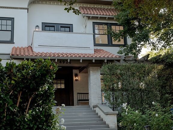 Presenting Lunga Vita. Tucked within the historic enclave of Melrose Hill, this Craftsman stands as the crown jewel of the neighborhood. Thoughtfully redesigned by Andrea Landes, the home is embraced by tree-lined streets and enduring architecture that preserves the charm and history of classic Los Angeles. Set on a generous lot, the home blends past and present in a way that feels both grounded and fresh. Inside, every window frame lush greenery, wrapping each room in a constant dialogue with nature. Light fills the spaces, moving gently across wood, tile, and glass, softening the edges of daily life. This is a home that breathes, that feels alive. A welcoming front porch opens to light-filled living and dining spaces accented by original stained glass. The family room overlooks the park-like backyard and flows into a gourmet kitchen with quartz counters, stainless steel appliances, custom tile, open shelving, and a large island. A skylit staircase leads to four bedrooms, one of which has been transformed into a bespoke walk-in closet featuring a studio grade vanity mirror and exquisite calacatta marble finishes. The primary suite features a skylit sitting area, an additional walk-in closet, a spa-inspired bath with a soaking tub and oversized shower, and sweeping city views that capture the most radiant sunset light. The home is complete with a spacious laundry room, finished basement, two-car garage, and a gated motor court with parking for at least five cars. Above the garage, a private ADU with its own deck and 2 baths provides a flexible extension of the property - ideal for guests, a studio, or a home office. The home balances old and new world charm. A rare blend of preserved character and modern elegance. Positioned on a 10,000 sq. ft. lot, it is both a piece of Los Angeles history and a gateway to Melrose Hill - now one of LA's hottest culinary boomtowns, alive with new cafes, restaurants, and galleries. Minutes from Los Feliz, Hancock Park, and the city's best dining, it remains one of Melrose Hill's most treasured homes.
