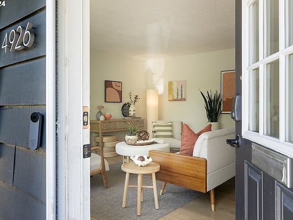 Stacked with sensible, stylish updates, this one-level ranch is a stone cold cutie in a great SE Portland location! A rustic pellet stove brings the cozy with cabin-in-the-woods vibes. A separate dining area like you've always wanted, and a tastefully updated kitchen beckons your inner chef. Three comfy bedrooms, the primary with French doors leading out to the super cute patio, a perfect spot for sipping a cappuccino as the sun rises. The 2024 remodeled bathroom is cheerily composed, and a pleasure to use. Outside, a recently established paver patio is such a welcome space for outdoor socializing, plus there's a cedar-fenced backyard that's spacious and secure. Plenty of established trees and plants - including a delicious plum tree - yet still enough space for your gardening aspirations. There's an oversized garage in great shape, with alleyway access and skylights...let's just say there's loads of potential here. And the shining gem? A Scandi-style barrel sauna that will let you sweat all your stress away. Imagine a crisp Fall evening with mulled wine and a sauna party? We certainly can. Smart features include a Nest doorbell and Yale Assure smart lock, plus a rare Home Energy Score of 10 for the eco-conscious. You'll also love the location, near a cluster of shops and restaurants, and with a near perfect bike score of 99. There's parks and schools nearby, a popular local spot for dog walking, and easy breezy commuting in all directions. What's better than a dialed-in, absolutely adorable, deftly updated one-level home that's 100% ready for you to move right on in? [Home Energy Score = 10. HES Report at https://rpt.greenbuildingregistry.com/hes/OR10014340]